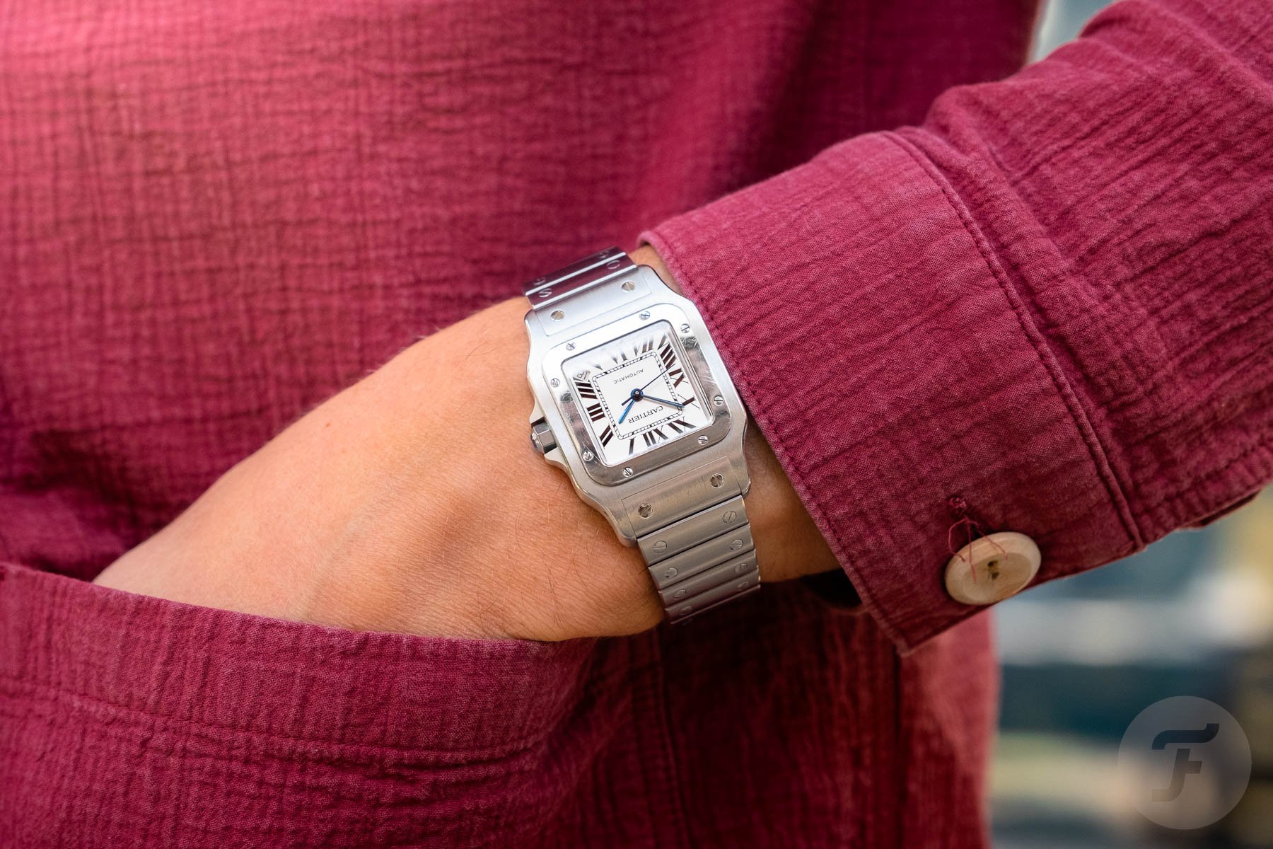 watches we love but would not recommend — Cartier Santos Galbée XL on wrist