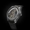 For the ThinKing Mystery, the “eyes” are fully transparent, with the crossbars eliminated from their structure. The concept echoes Chaykin’s Mystery 1000 Jewels, created in 2007 as a tribute to the legacy of Jean-Eugène Robert-Houdin, the illusionist, watchmaker, and inventor. In the 19th century, Robert-Houdin designed a table clock with a single hand driven by a transparent disc. It appeared to float in mid-air while the movement itself remained concealed within the case.