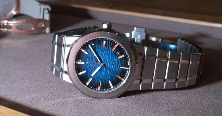 At a relaunch event at the company’s headquarters in La Chaux-de-Fonds, Corum executives outlined the brand’s new strategy and unveiled a new Admiral design that included early input and drawing from Emmanuel Gueit (Royal Oak Offshore, Dennison etc.), featuring an integrated bracelet and a new caliber produced by Swiss movement specialist Concepto Watch Factory. Corum will begin by making about 1,500 watches per year, with plans to ramp up production incrementally as it adds new models and designs of the Golden Bridge, coin watches, and Golden Book models.