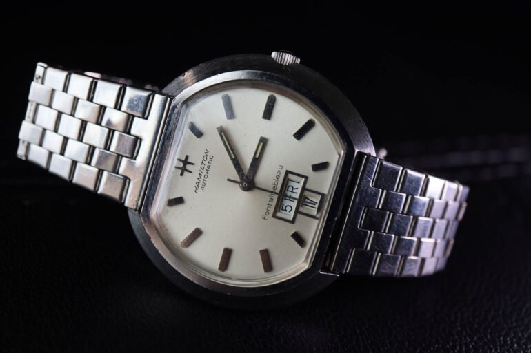 In 1966, the patents for Hamilton designer Ulrich Nydegger’s new case were published. A couple of years later, the first few Fontainebleau models hit the market and garnered a decent amount of popularity. It wasn’t until 1969’s Fontainebleau Chrono-Matic chronograph, however, that the line would see a substantial amount of press and recognition for its innovative design. The collectibility of the Chrono-Matic model continues to increase over time, with market estimates reaching well over $2.5k for good condition examples. The first few models of the series, however, may just be the perfect gateway into the Fontainebleau line for those of us with a more conservative amount of “fun money” to spend. While these models certainly won’t cost you the price of an F-91W, they’ll save you and your wallet quite a bit of headache.