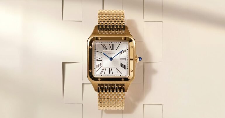 The brand says the new bracelet is inspired by the flexibility of the maison’s made-to-measure metal watch straps developed back in the 1920s. It aims for a smooth drape, with 1.15 mm-thick links forming the mesh, composed of 15 rows for a total of 394 links. Each bracelet is made with these elements, which are machined, finished, and assembled at the Cartier manufacture, it says.