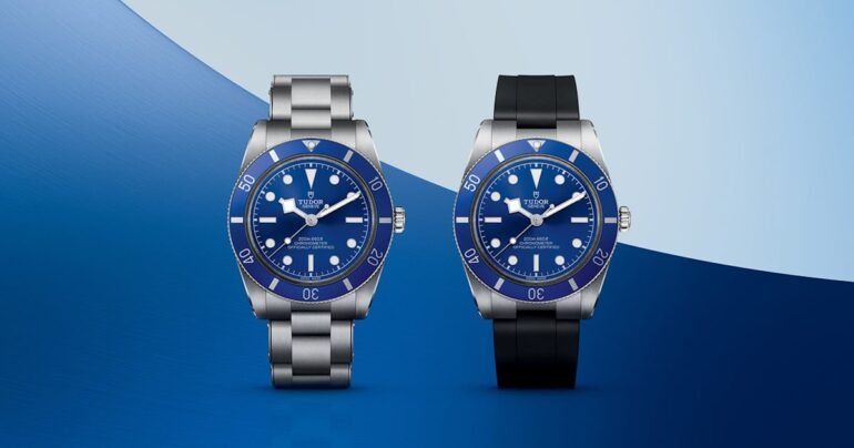 Inside the watch is the COSC-certified MT5400 caliber, offering a power reserve of 70 hours, a beat rate of 28,800 VpH, and a silicon balance spring. The new Tudor Black Bay 54 “Blue” is available with either a three-link stainless steel bracelet with faux rivets or a cut-to-size rubber strap. Both come with the brand’s “T-fit” clasp for a five-position, tool-free microadjust. The bracelet model is priced at $4,725, and the rubber strap model is priced at $4,475.