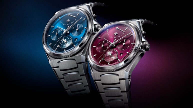The skeletonized dauphine hands add another layer of dressiness, but it’s the sub dials that really grab attention, especially the day-night indicator at 6 o’clock, which features a sapphire half moon, held down with two visible screws. This touch of industrial practicality is at odds with the rest of the design, but doesn’t feel out-of-place, since the balance of the dial’s other elements is well-managed; the circular date window sits between 4 and 5, the day and month dials oppose each other at 9 and 3 respectively, and the power reserve indicator anchors the design at 12. The precisely-engineered power reserve hand has a raised neck to avoid interfering with the Venezianico cross logo as it sweeps across from 11 and 1 o’clock, again calling attention to precision and function in tandem with form. It’s a busy design that is further accentuated by the vivid colors, but the Calendario manages to keep it all from feeling too overstimulating, largely thanks to the well-thought-out layout of the dial.
