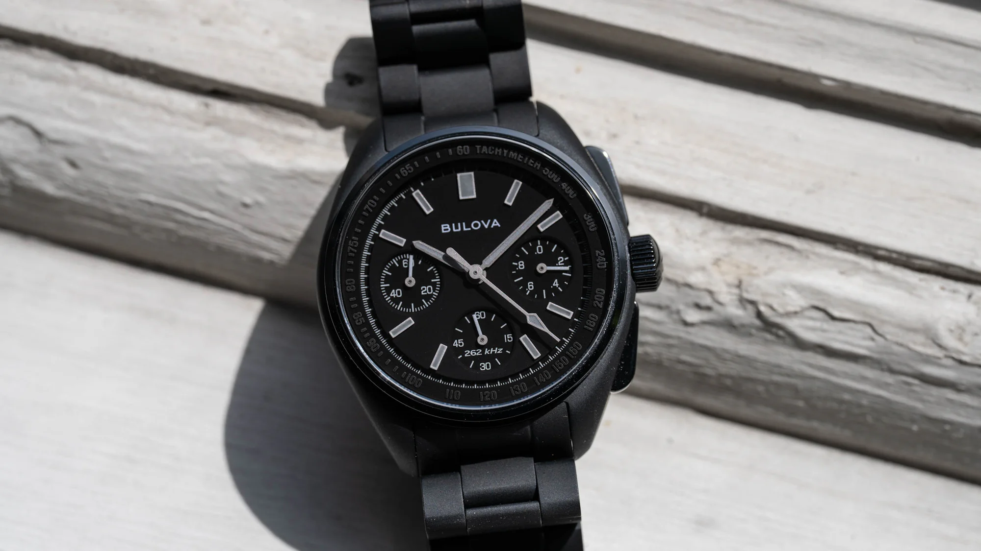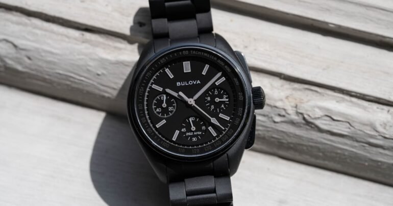 Bulova nerds, rejoice! Finally, after years and years of customers and collectors pleading, the Lunar Pilot is now available in a smaller size. Now, if you were hoping that you’d be able to run out and buy the classic Lunar Pilot design just downsized a bit, sadly, you’re not in luck for now. But those looking for a twist on the original may be intrigued, as Bulova introduces the smaller case size in a new, blacked-out design called the Lunar Pilot Black Hole.