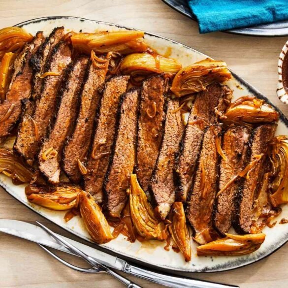 A rub with paprika, sage, and other seasonings helps create a flavorful crust on the brisket. Browning and braising the...