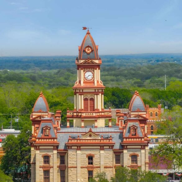 The last light of a Texas sunset fades to pink as I step onto Lockhart’s town square. At its center,...