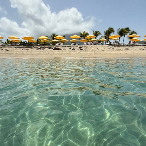 You can feel St. Kitts in the air here: trade winds off the water, palms moving in the background, and...