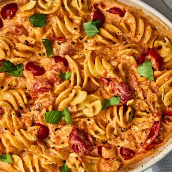 A luscious, creamy pasta sauce is created when juicy cherry tomatoes are baked together with a block of feta. With...