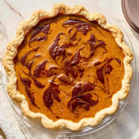 Bittersweet chocolate adds flavor contrast and a bold look to the sweet, silky pumpkin filling. The handmade crust is buttery,...
