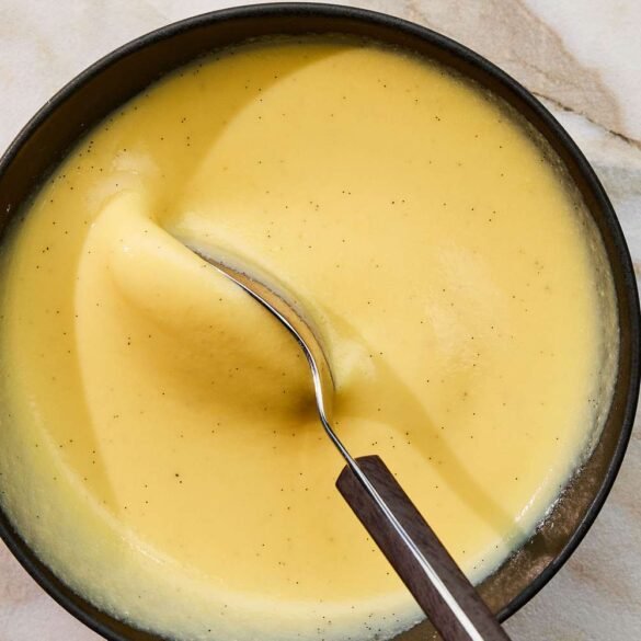 Gently heating the half-and-half with a split vanilla bean just until bubbles appear at the rim extracts the delicate vanilla...