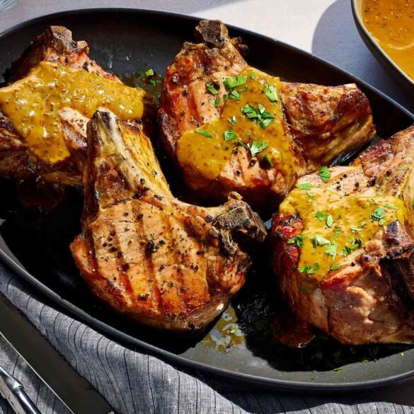 WatchesCider-Brined Pork Chops RecipeAn overnight apple cider brine keeps the thick double-cut pork chops juicy and flavorful. The warm mustard-based sauce — made... Read More
