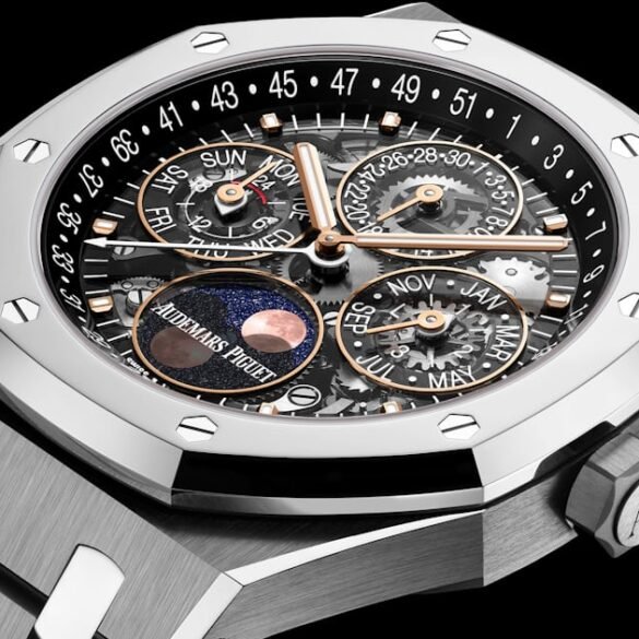 Next up is the Royal Oak Perpetual Calendar Openworked ref. 26685XT.OO.1320XT.01, encased in titanium and Bulk Metallic Glass. Like last...