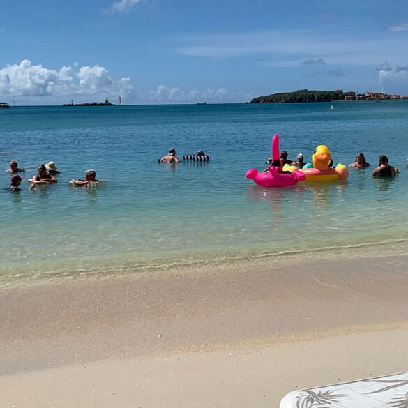 On St. Maarten, the beach bar is usually a pay-as-you-go affair — a chair, a bucket of beers, maybe a...