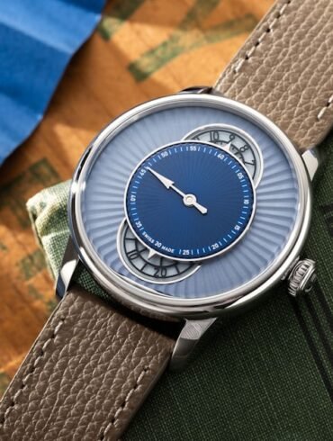 The case is delivered in polished 316L steel and offers a svelte profile, a backdrop for the rather unique layout...