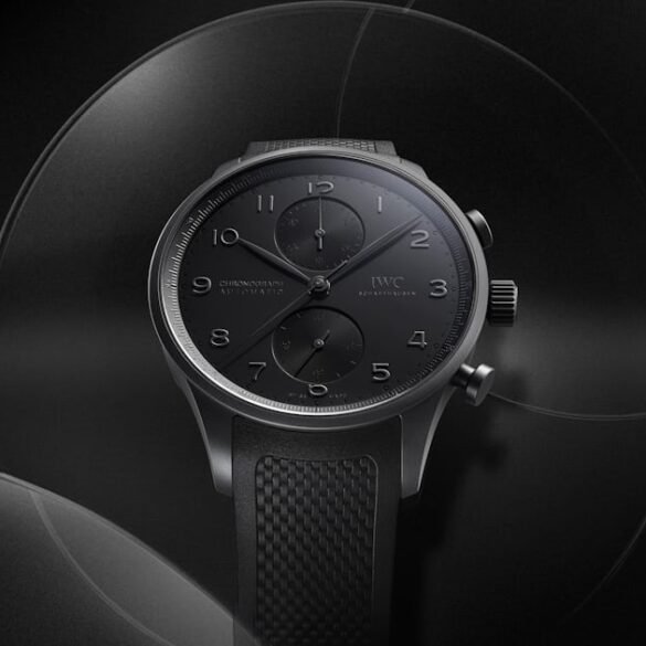 Dial styling is analogous to that on IWC’s Pilot’s Watch Chronograph 41 ‘Top Gun’ Ceratanium, going for a low-contrast monochromatic...